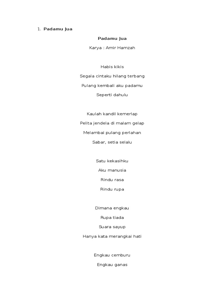 Struktur fisik puisi terdiri atas diksi imaji kata konkret gaya bahasa rima atau ritme dan tipografi. Imaji dari Batas Negeri 2008 adalah antologi puisi ketiga. DOA Tuhanku Dalam termenungAku masih menyebut nama-Mu Biar susah sungguh Mengingat Kau penuh seluruh Caya-Mu panas suciTinggal kerlip lilin di kelam sunyi Tuhanku Aku hilang bentuk Remuk TuhankuAku mengembara di negeri asing Tuhanku Di Pintu-Mu aku mengetuk Aku tidak bisa berpaling Karya.